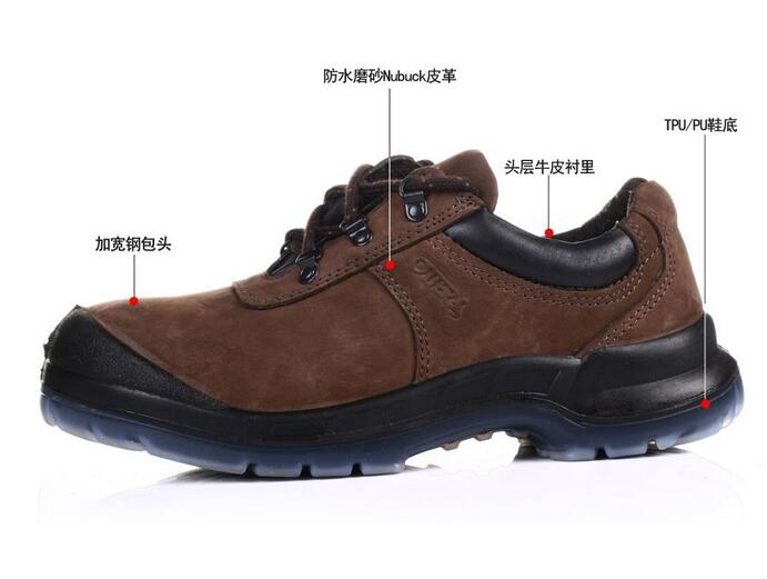 目前市場上的安全鞋主要是牛皮為主,合成革極少;一雙好的安全鞋主要是看兩個部位;一個是看安全鞋面皮質的好壞,這個一般的人是不會區(qū)分,牛皮區(qū)分的四個方法是;一:看,頭層牛皮,紋路的分布是不均勻的,因為在“摔皮”這一道工序過程中,紋路會順著牛皮的自然紋路而成,所以會形成錯落有致的紋路,而2層以上的牛皮或皮革不會有這種錯落的紋路的
